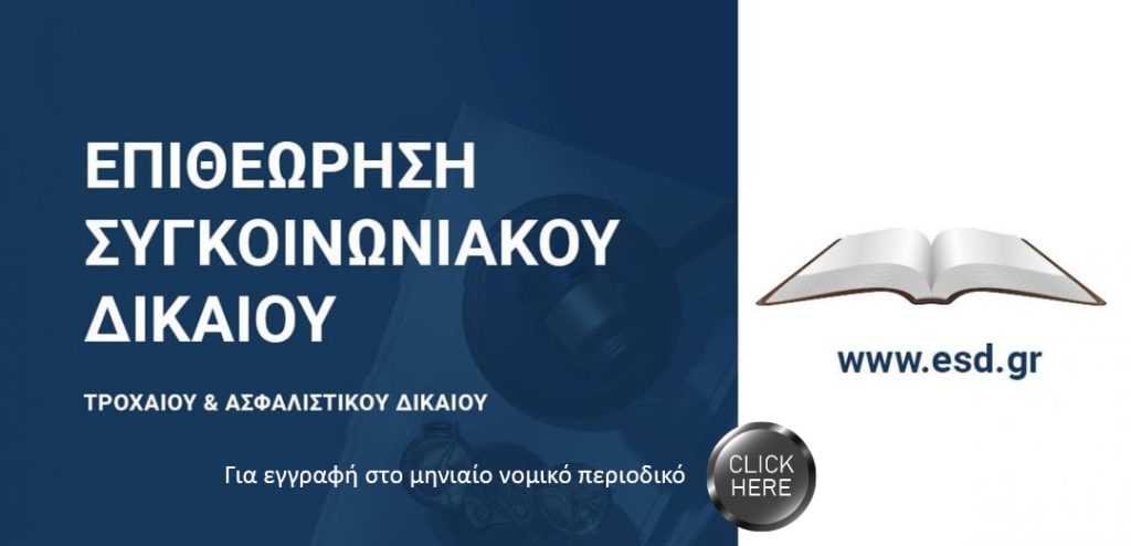 Κρίθηκε, ότι η παράνομη κίνηση του προπορευόμενου και έμπροσθεν της μοτοσικλέτας ΙΧΦ κατά παράβαση των άρθρων 16 παρ.2 και 3 και 20 ΚΟΚ ιππαστί επί της διακεκομμένης διαχωριστικής γραμμής μεταξύ των δύο λωρίδων κυκλοφορίας, με ταχύτητα 85 χλμ/ω, δηλαδή οριακά πάνω από το επιτρεπόμενο όριο ταχύτητας , χωρίς αριστερό καθρέπτη, δεν αποδείχθηκε ότι συνδέονται αιτιωδώς με την πρόκληση του ένδικου ατυχήματος. Η συνεχής ευθεία πορεία του ΙΧΦ έστω και σε αυτό το σημείο του οδοστρώματος και με την παραπάνω ταχύτητα δεν συνετέλεσαν στην πρόκληση του ατυχήματος, καθώς ο ενάγων οδηγός της μοτοσικλέτας με ευχέρεια μπορούσε λόγω του πλάτους της να περάσει παράπλευρα του ΙΧΦ στον απομένοντα χώρο 1,50 – 2,00 μέτρων, και να το προσπεράσει αβλαβώς.