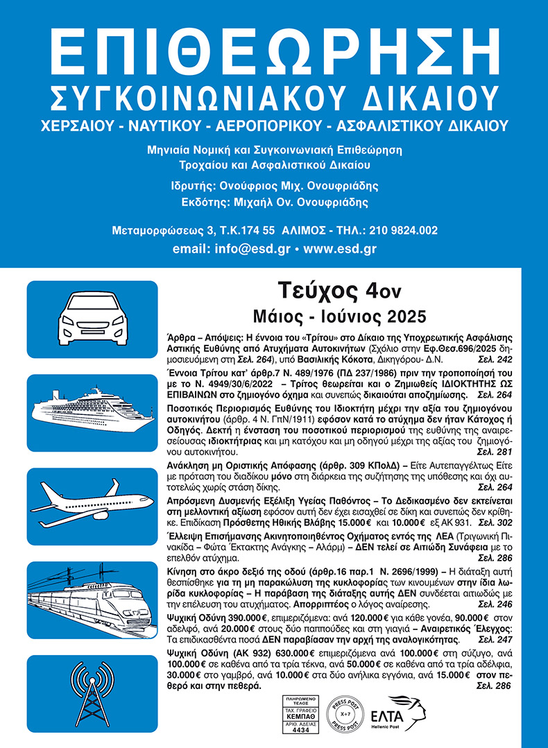 Όροι χρήσης / Επιθεώρηση Συγκοινωνιακού Δικαίου esd.gr © 2026 / All Rights Reserved